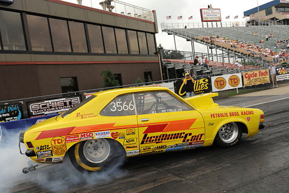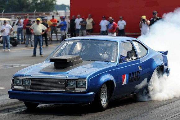 "Now this is what we're talkin' about! Gary Richmond of Ohio has converted his high flying 1970 Maverick from an IHRA B/Crate Motor racer to NNPSA specs. Here he is at our September, 2010 event, which made the cover of Drag Racing Online. The car is currently for sale, so watch for something even wilder from Gary down the road."